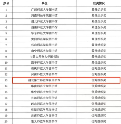 获奖信息公布网址:关于公布首届全国师范院校图书馆馆员专业素养大赛获奖结果的通知(新闻中心编辑 程丽鹃)