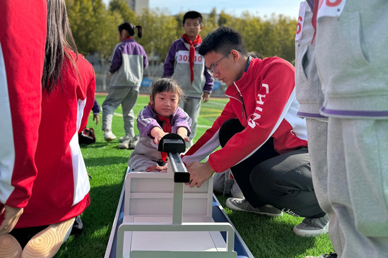 武汉新城中心小学热情接待了师生一行。在中心小学钟欣怡老师的带领下,学子们参观了学校先进的教学设备和美丽的校园环境,见习和参与了学校的体质健康达标测试运动会的组织过程,对义务教育阶段的一线体育教育工作有了新的认知。