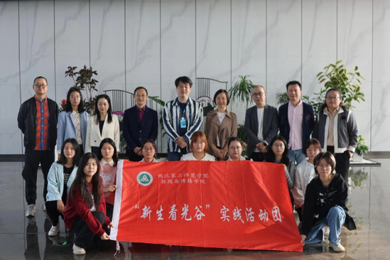 本网讯(通讯员 唐梦曦)11月15日上午,新闻与传播学院组织学生赴湖北广电传媒大厦开展“新生看光谷”教育实践活动。湖北广播电视台音乐广播事业部总监刘立峰接待师生一行,校新闻中心主任兼宣传部副部长谢莎参加活动。
