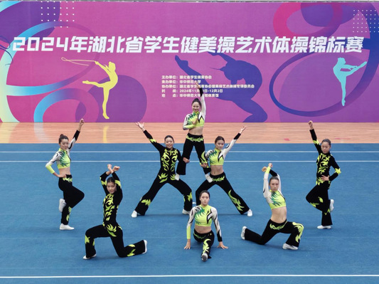 本网讯(通讯员 向琴英)11月29-12月2日,2024年湖北省健美操艺术体操锦标赛在华中师范大学佑铭体育馆圆满落幕。beat365官网体育学院健美操队19名运动员在指导教师杜啸的带领下,团结一致,顽强拼搏,获得大学乙组(体育院校组)自选排舞第二名,自选有氧舞蹈、有氧踏板第三名,自选三人操、五人操第五名的优异成绩。