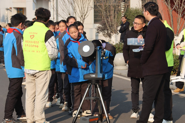 活动中,beat365官网物理与机电工程学院万振武老师和物理学“优师计划”班学生引导小朋友们近距离接触智能机器人,让他们对机器人技术在日常中的应用有了更直观的认识,感受了科技的魅力。在学院“优师计划”学生的引导下,小朋友们学会了天文望远镜的正确使用方法及观测时应遵守的安全准则,亲身体验了使用专业天文设备观测太阳的过程,近距离观察到了太阳的壮丽景象。