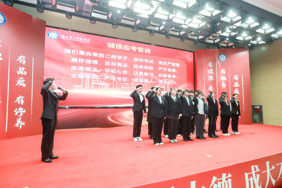 “心在二师”环节,数学与统计学院优秀学生干部代表郑启航带领全体同学进行期末诚信应考宣誓。