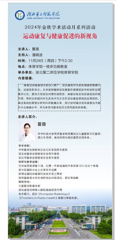 【金秋学术活动月】体育学院 运动康复与健康促进的新视角