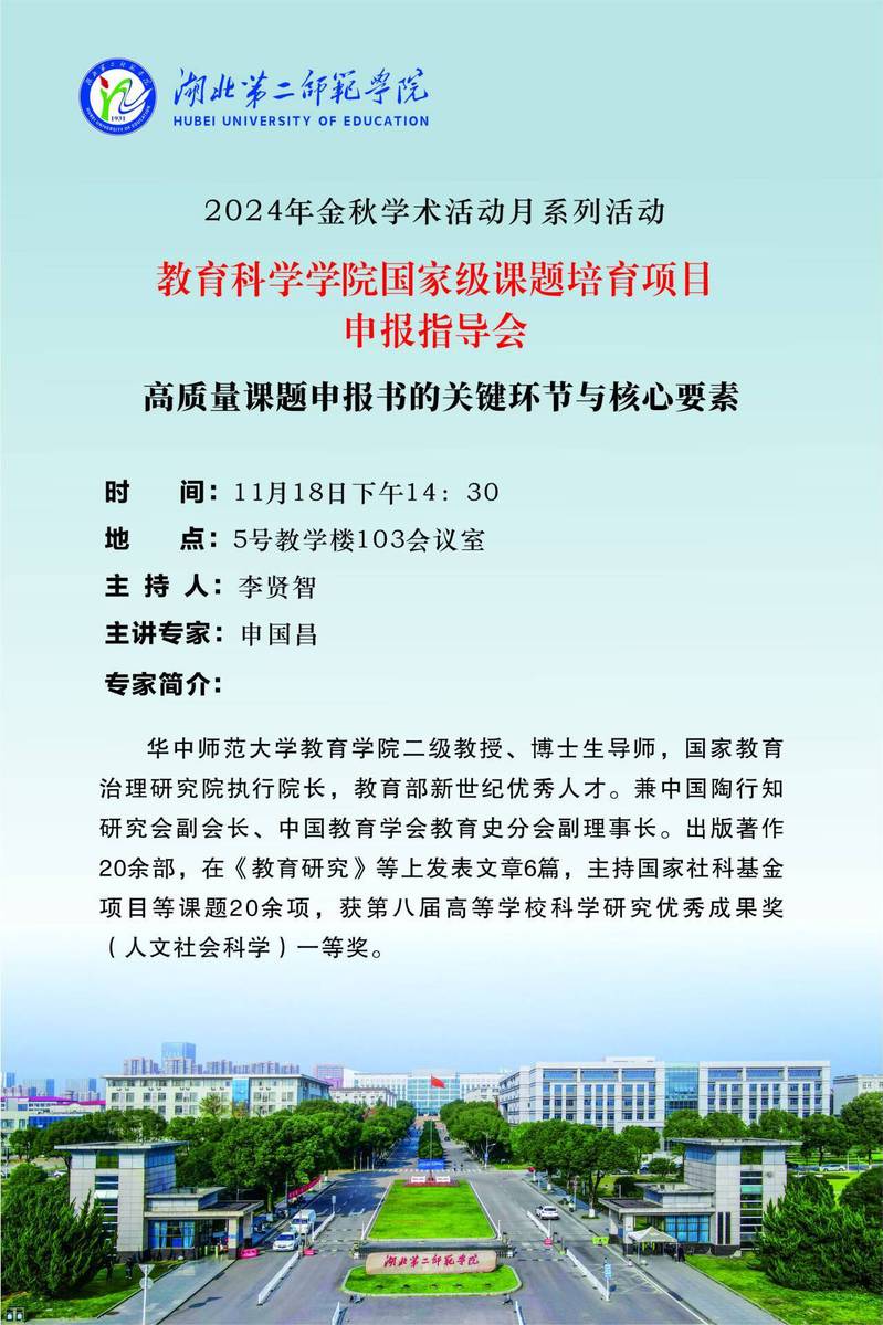 【金秋学术活动月】教育科学学院 国家级课题培育项目申报指导会