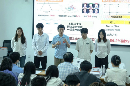 评委专家从参赛作品的科学性、先进性、现实意义等多维度对项目进行评审,围绕项目创新点、数据支撑、实践过程等方面进行提问,并对每个项目提出优化意见。最终,25项作品入围省赛选拔环节。