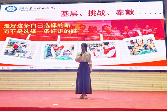 分享会现场播放了2025年西部计划招募宣传片,校团委负责人对西部计划相关政策进行解读。来自各学院的13名故事主讲人逐一登场,从“踏上征途”“岗位锻炼”“屯垦戍边”等方面,深情讲述了学长们投身西部基层建设的成长故事。