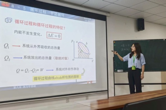 比赛现场,马老师以《卡诺循环》为例,生动有趣地阐释热力学原理,其灵活多样的授课方式获评委肯定。