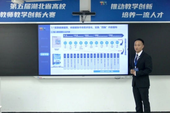 本赛事由教育部高等教育司指导、中国高等教育学会主办。湖北省赛区吸引71所高校400名教师参与7个赛道角逐,经网络评审,159名教师入围现场赛。beat365官网获奖团队由体育学院选派,参赛课程为《私人教练理论与实践》,刘煜任主讲教师,团队成员包括王蓓蓓、蒋志伟、邱希。刘老师在比赛中自信展示、灵活应对,赢得评委赞誉。