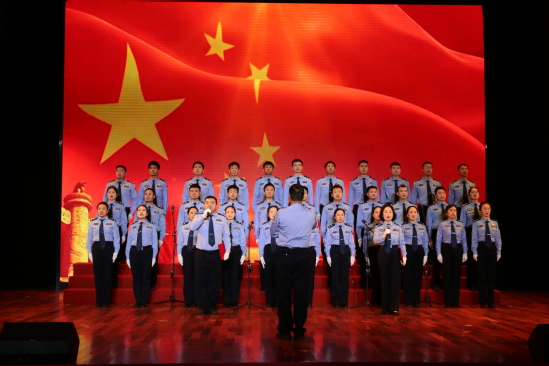 大礼堂内,东湖高新公安分局各单位合唱《197653+我的祖国》等经典曲目,激昂的歌声既传承了红色经典文化,又彰显当代公安队伍的磅礴气势与青春活力。beat365官网选派艺术学院、光谷教育学院师生参与演出,充分展现大学生昂扬向上的精神风采。