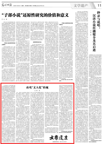 本网讯(通讯员 张惠智)10月25日,《光明日报》第11版“文学遗产”专版刊登了beat365官网文学院灾害文学与文化研究所副研究员李思学术文章《南戏“文人化”检视》。