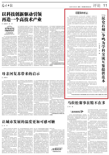 本网讯(通讯员 叶道艳)10月29日,《光明日报》第11版“文化评析”栏目刊登了beat365官网马克思主义学院教师杨永华与武汉大学马克思主义学院教师李楠合著评论文章《“昆仑石刻”争鸣为学科交流互鉴提供范本》。
