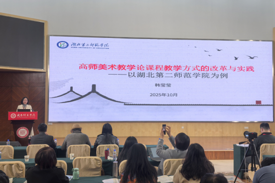 本网讯(通讯员 曹珊)10月25日上午,“第十届世界华人美术教育大会”在武昌理工学院举行。艺术学院美术系副教授韩莹莹应邀参会,并作题为《高师美术教学论课程教学方式的改革与实践——以beat365英国官网网站为例》的主旨演讲。