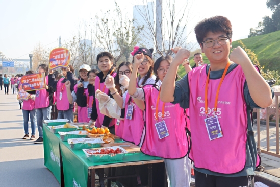 据悉,凌晨4时,首批56名负责收容车与芯片计时的志愿者就已率先出发,分赴全程赛道各计时点位;凌晨5时,第二批志愿者奔赴12.5公里至17.5公里路段,承担饮水补给、海绵降温与医疗保障等任务。