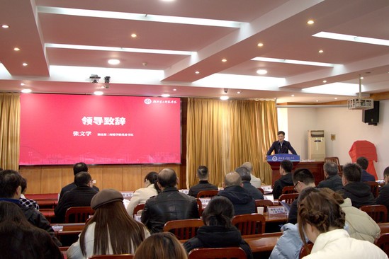张文学在致辞时指出,中心揭牌是学校深入贯彻落实党的二十届四中全会精神,主动融入光谷、服务湖北、面向未来的重要举措。学校将创新创业教育视为深化教育教学改革、提升人才培养质量的战略引擎,紧密对接湖北省“创响荆楚”行动和武汉市科创三年方案,充分发挥教师教育的传统优势,积极推动教育链、人才链与光谷创新链、产业链的深度融合。近年来,通过搭建平台、完善机制、培育项目,成功孵化了一批聚焦智慧教育、文化创意、生命健康等领域的特色项目。