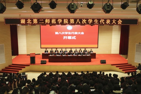 本网讯(学通社记者 胡雯萱 通讯员 时万祥)11月27日下午,学校第八次学生代表大会在图书馆二号报告厅召开。校党委常委胡庆山、省学联驻会执行主席潘霏霏出席会议,校团委书记刘锐主持开幕会。