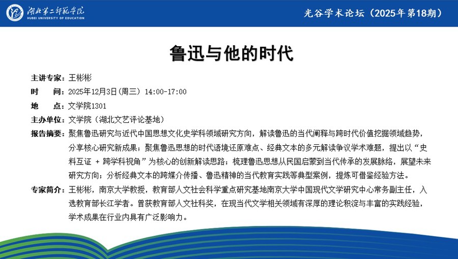 【光谷学术论坛预告】鲁迅与他的时代