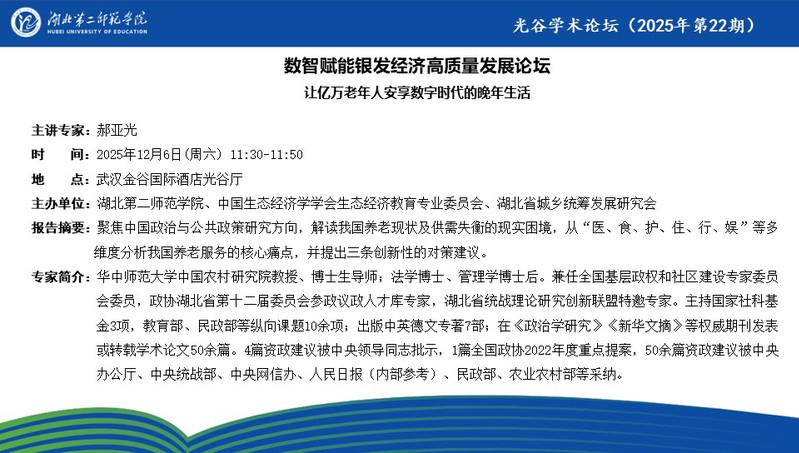 【光谷学术论坛预告】让亿万老年人安享数字时代的晚年生活