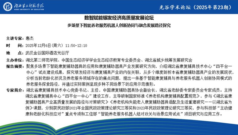 【光谷学术论坛预告】多场景下智能养老服务机器人创新协同与融合发展路径探究