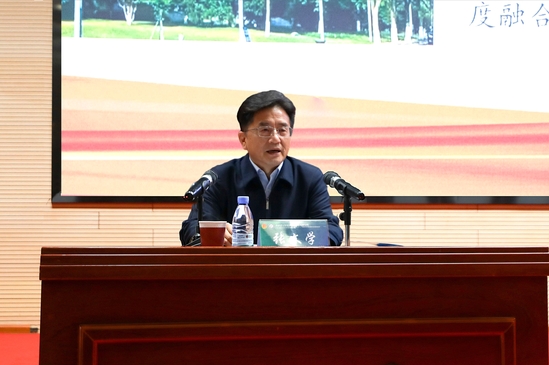 本网讯(通讯员 时万祥)12月18日下午,学校在图书馆二号报告厅举行“悦学习·跃青春”党的二十届四中全会精神示范宣讲暨“青马工程”大学生骨干培训班开班仪式。校党委书记张文学以《凝聚青春力量,投身伟大征程,从学习贯彻党的二十届四中全会谈新时代青年的使命担当》为题作示范宣讲。党委常委、宣传部部长周忠出席,党委常委胡庆山主持仪式。