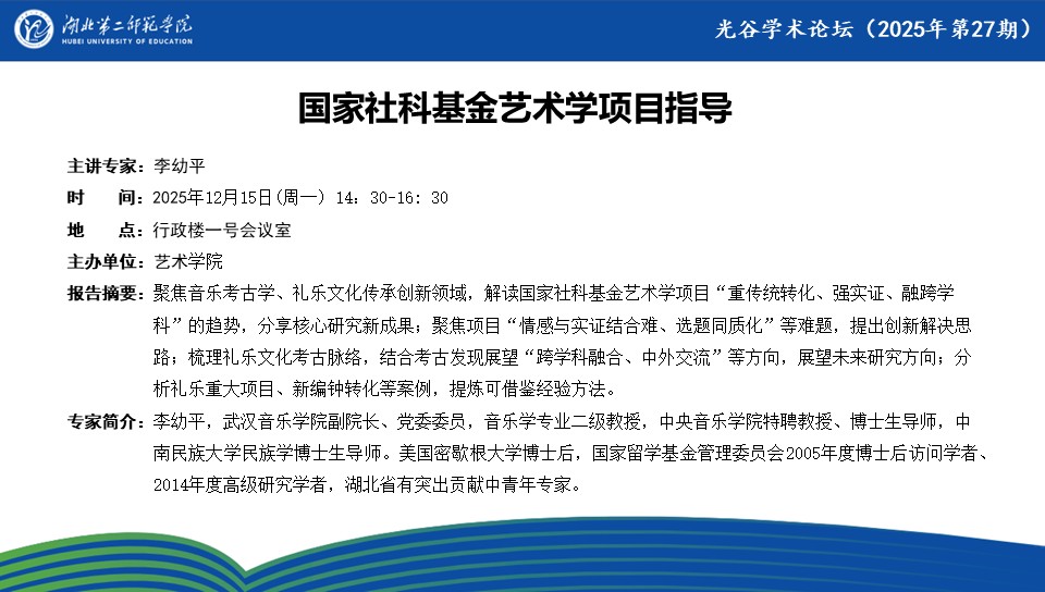 【光谷学术论坛预告】国家社科基金艺术学项目指导