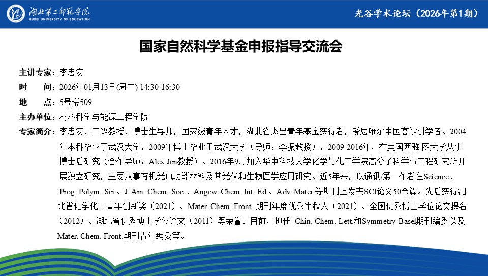 【光谷学术论坛预告】国家自然科学基金申报指导交流会