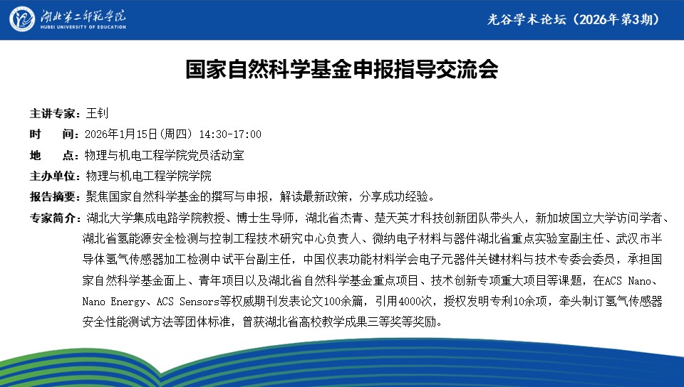 【光谷学术论坛预告】国家自然科学基金申报指导交流会