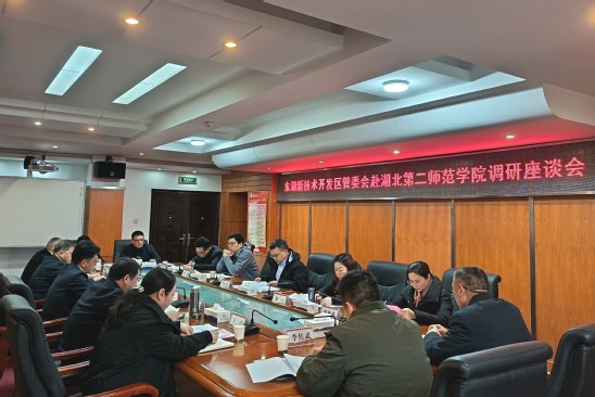 本网讯(通讯员 杨戌)2月3日下午,武汉东湖新技术开发区管委会(东湖高新区)党工委委员艾传荣一行来校走访调研,双方在行政楼四号会议室举行座谈。校党委书记张文学、党委副书记胡兴出席会议,校长郑军主持会议。