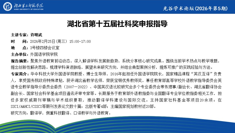 【光谷学术论坛预告】湖北省第十五届社科奖申报指导
