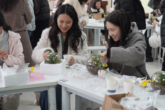 “平时在实验室讲分子式,今天亲手把化学知识变成了生活好物。”活动现场,教职工们围拢在作品旁交流心得。大家表示,这种“专业+生活”的活动形式,既让紧绷的神经在草木芬芳中得到放松,也在精细手作中找回了专注与宁静。带着亲手制作的微景观和香薰蜡烛回到岗位,办公桌一角多了生机,忙碌间隙也多了一份治愈。
