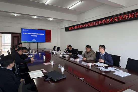 本网讯(通讯员 淡珊)3月12日下午,学校在行政楼434会议室举行2026年度湖北省科学技术奖第二次预答辩评审指导会。科研处处长李海雄主持会议,多位校外科技奖励评审专家受邀到会指导,各项目申报团队负责人参加会议。